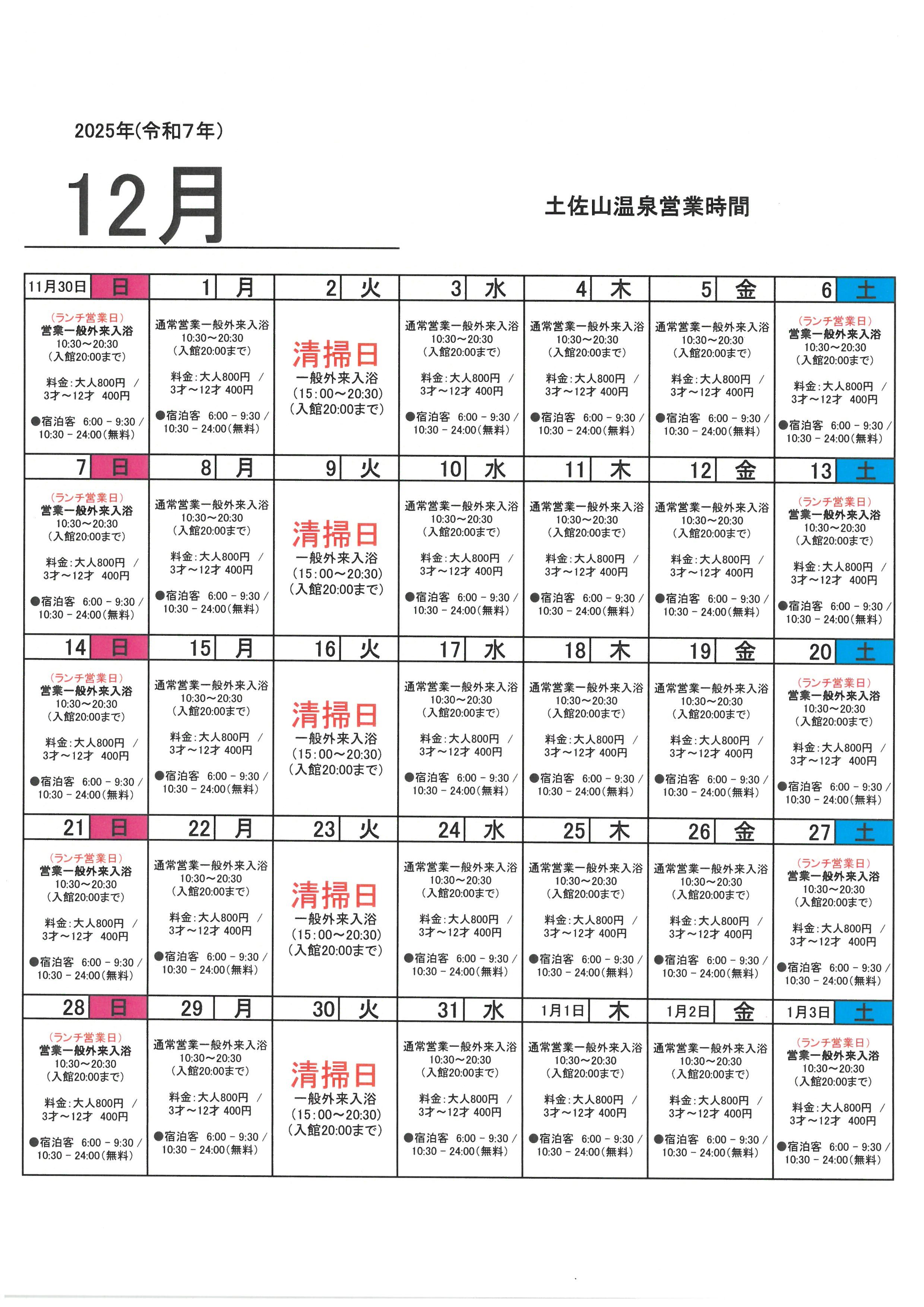 ●一般外来入浴 10:30~20:30(入館20:00まで)